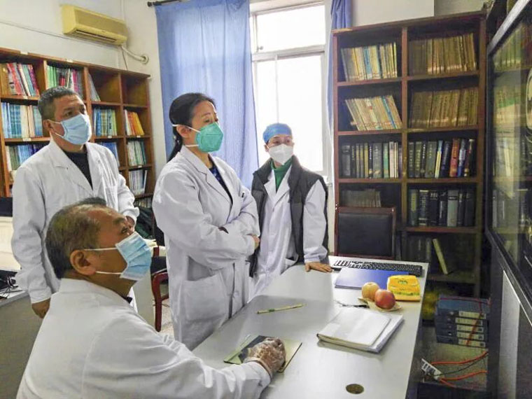 我院呼吸内科丁翠敏主任和神经内科韩颖副主任同在普通型组。丁主任带领省市专家组的普通型组医生,每日上、下午都要查看组内所有患者的病情,反复比较前后胸部CT、核酸检测和其他检查,梳理医嘱。这几天患者普遍病情得到缓解,有出院可能的患者增多。为了进一步全面了解患者情况,医护们利用微信等工具,进行视频查房,随时观察患者情况。韩颖副主任力求治疗前移,把神经系统并发症的可能性降到最低。她梳理了所有病人神经系统疾病的高危因素,做成表格,随时监控患者的情况。