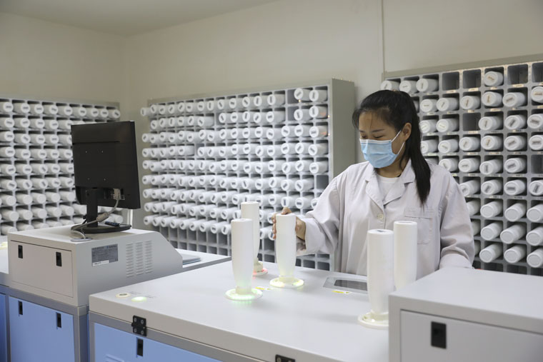 在智能中药房内,几排白色胶囊瓶紧凑地布满一面墙,如同蜂巢,近300味常用中药全部变身为中药配方浓缩颗粒,分装于筒状容器内。患者交费后,持就诊卡来窗口报道,药师将对医师的电子处方进行审核确认,合理处方被上传至该智能调配系统,系统将处方中的每位饮片自动折算成相应的颗粒剂量。点击自动调配后,墙上相应的胶囊瓶便有亮灯显示,取出亮灯的胶囊瓶,放置在配方机调剂位置,经过扫码二次确认后,机器便自动按处方剂量要求,将配方颗粒调剂并封装在塑料药袋里,调剂方式采用自动化数字控制,最大程度缩短患者的取药等候时间,同时也避免了中药调剂过程中出现的人为差错,进而减少了医患矛盾。