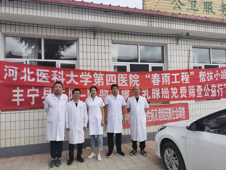 为进一步深化城乡医院对口支援工作,提高贫困县乡镇卫生院医疗服务能力,我院积极响应河北省卫健委“春雨工程”号召,先后由医务处精心协调组织并派出3轮医疗小组深入丰宁满族自治县乡镇卫生院进行帮扶,今年5人帮扶小组自5月11日起进行为期一年的技术帮扶工作。在开展日常工作同时,他们深入基层,了解到农村群众对肿瘤了解较少,出现异常身体状况不重视,以至于肿瘤发现晚,治疗效果差且花费大。他们积极与丰宁县医院肿瘤科、普外科等相关科室沟通,针对当地肿瘤发病及诊疗特点,提议对恶性肿瘤进行健康宣教及筛查工作,提高广大群众的健康意识,逐步实现肿瘤的早发现、早诊断、早治疗。县医院领导高度重视,给予鼎立支持、组织及配合,经丰宁满族自治县卫生健康局批准同意,指示在全县范围内开展“乳腺癌”早期筛查工作,并在积累一定经验后逐步开展其他癌种筛查。