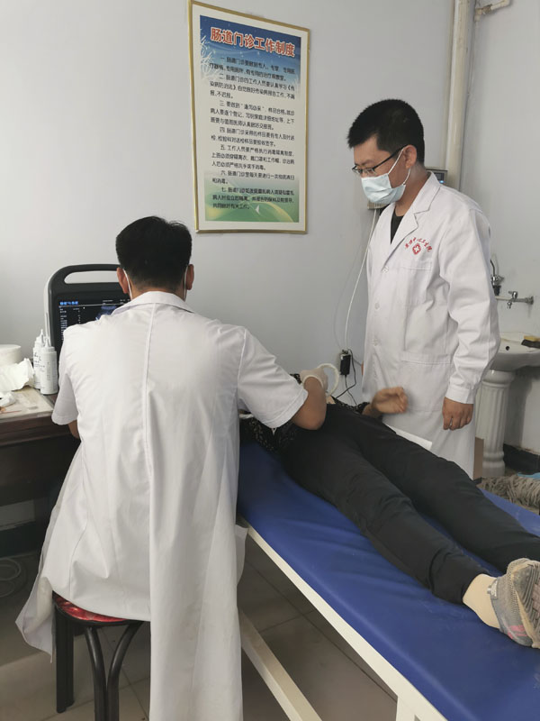 8月8日,乳腺癌早期筛查工作正式启动,考虑到相关工作人员、志愿者很多都未从事肿瘤相关专业,对乳腺癌的相关知识了解不全面,帮扶小组成员先对其进行了专业知识培训及动员准备工作,针对后续面向基层百姓,浅显易懂的从乳腺癌发病率、预防、早诊、早治、治疗方案等方面做了详细讲述,为本次筛查活动良好开展打下了坚实基础。8月16日,癌症早筛工作在黄旗镇卫生院拉开序幕,当日就对镇下辖18个村子的80余名高危患者进行筛查,除进行初步的问诊、流行病学调查、体检等工作外,还对高危患者及查体触诊不满意患者进行了免费的乳腺及淋巴引流区彩超检查,发现疑似乳腺癌术后腋窝淋巴转移患者1例,乳腺结节BI-RADS 3类1例,需进一步随访观察。