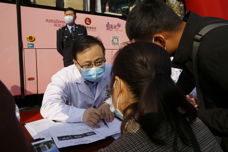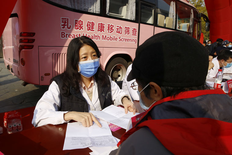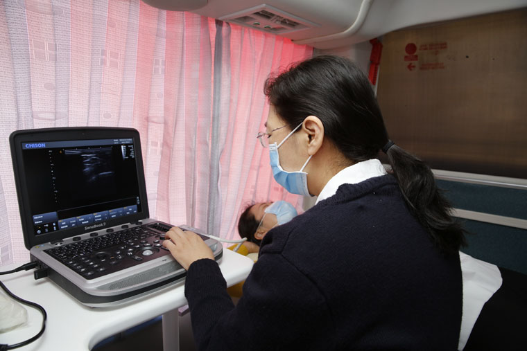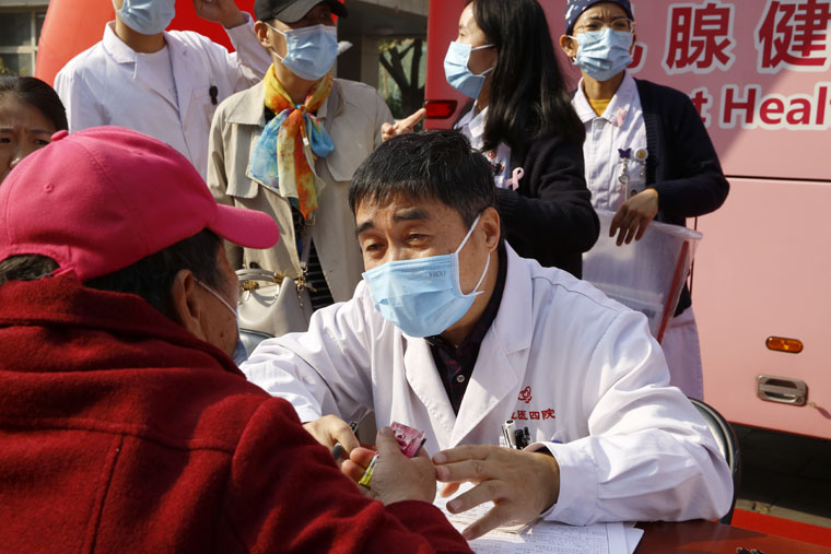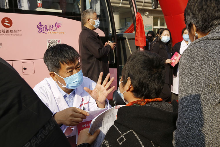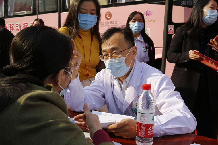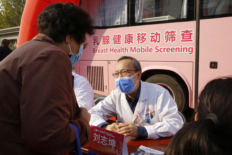 “粉红丝带”作为全球乳腺癌防治的标志性活动,积极倡导早预防、早发现、早治疗的理念,每年的10月定为“乳腺癌防治月”。乳腺癌筛查是提高早期诊断率、生存率及生存质量的最为有效的方法。世界卫生组织(WHO)已明确将早期乳腺癌列为可治愈性疾病,早诊早治是提高乳腺癌治愈率的最佳途径。由我院、无锡灵山慈善基金会及阿斯利康中国联合发起的“河北省乳腺癌移动筛查项目”将以我院为中心,建立全省上下联动的乳腺癌移动筛查模式,提供上门便捷筛查、县级医疗机构乳腺癌筛查及诊治标准化培训指导等多项工作。“爱汝快车”配备有基础的健康查体设施及乳腺超声等设备,开到百姓的家门口,上车就能进行乳腺检查,使广大妇女尤其是贫困地区妇女足不出户即可享受省级医院的同质化检查。