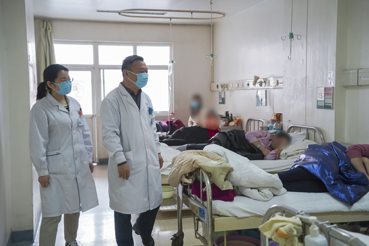 大年初一,妇瘤科牛书怀、刘青进行查房和其他工作。刘青说,“这是我第一次在大年初一坚守岗位,非常光荣,一定把医学的接力棒接稳,跑好。”