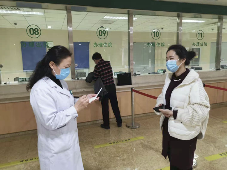 大年初一,干部保健处宋颖博、徐立霞陪同患者家属办理住院手续。