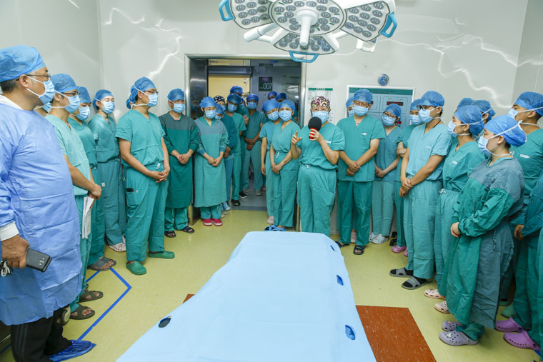 “着火了,着火了!门口起火,大家保持镇静,不要慌张……”7月20日上午8点,东院区手术室、麻醉科及肝胆外科、乳腺外科20名医护人员在手术室进行的术中火灾应急消防演练。
