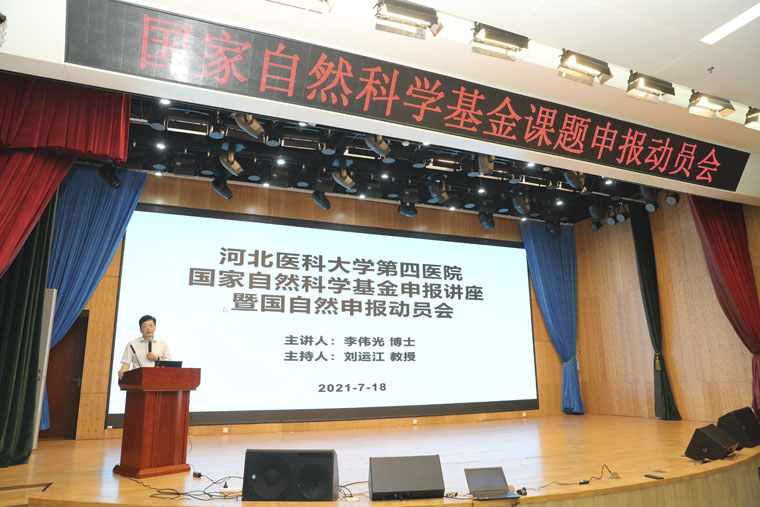 7月18日,我院在新医技病房楼6楼报告厅召开国家自然科学基金课题申报动员会,邀请到武汉大学循证与转化医学中心李伟光博士进行申报辅导讲座,我院副院长刘运江主持。