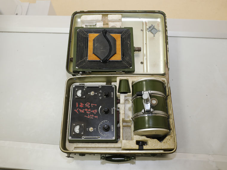进行透视作业时,病人位于支架中间,医师通过显示屏前的可伸缩观察孔阅读X线影像;摄影时,将X线管头扭转,对准病人和胶片暗盒方向。这台小小的X线机在抗震救灾、下乡服务等特殊情况下发挥了重要作用。