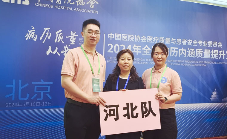 5月10-13日,由中国医院协会医疗质量与患者安全专业委员会主办的2024年首届全国病历内涵质量提升宣贯活动暨全国病历书写技能大赛及病历质控知识大赛在北京举行。在何宏涛副院长的支持与指导下,医务处李杰处长积极筹划,按照比赛规定从去年河北省推荐的“百佳病案”中抽选外三科夏宇翔、ICU王婧园医师参加比赛,由病案室李书梅主任带队。他们联合河北省多家医院共14名队员,组成河北省代表队,与全国其他30个省份近300所医院同仁同台竞技,经过初赛、复赛的激烈竞争,12个省队进入决赛,最终河北省代表队获得病历质控知识大赛团体赛第一名,夏宇翔获得个人赛第三名。