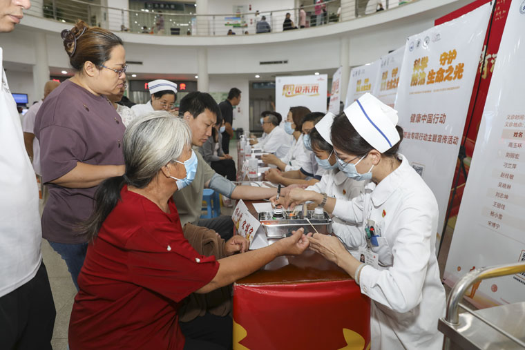 活动旨在提高公众对淋巴瘤的认识,增强患者及家属的治疗信心,共同推进淋巴瘤的规范诊疗与全程管理。专家们耐心细致地解答了患者关于淋巴瘤诊断、治疗、康复及随访中的各种问题,并根据患者的具体情况制定个性化的诊疗方案。面对患者的疑问和担忧,专家们用通俗易懂的语言进行了解释,并鼓励他们保持积极乐观的心态,积极配合治疗。同时,护理人员还为患者们免费测量血压和血糖,提供即时健康监测服务,让他们更加了解自己的身体状况。