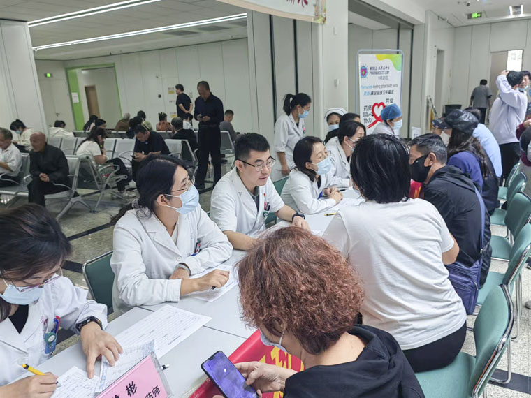 在药学部杜文力主任的指导下,多名药师及护士组成专家团队,为来院患者及家属提供专业的用药知识和指导,针对慢性病管理、特殊人群用药安全、老年人合理用药、药物不良反应筛查等多方面,提供个体化、科学化的用药建议。现场还发放了合理用药科普宣传页,同时提供测量血压服务,受到患者一致好评。