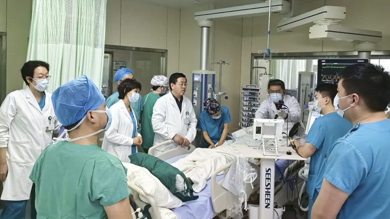 在ICU的病房里,还有一位高龄重症肺炎患者,让医护人员操碎了心。这位患者已经75岁,身体机能衰退,抵抗力较弱,加上刚经历了主动脉夹层这样的大手术,身体非常虚弱,又不幸感染重症肺炎,合并急性肾功能衰竭,病情复杂危重,治疗难度极大。