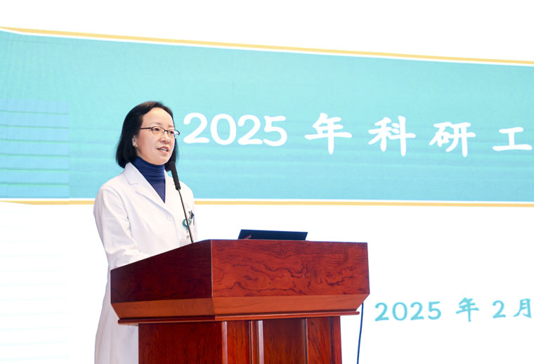 副院长田晓玲从“2020-2024年科研数据”“2025-2026科研目标责任书”“医院国自然激励政策”“多部门联动下的科研工作规划”等四个方面出发,对我院近年来科研工作的现状进行了精确分析,对今年的科研目标责任书做了详细讲解,并全面解读了医院制定的科研激励政策。她表示,医院将加大人才“内培”和“外引”力度,通过创新人才引进机制、实施“接班人计划”、构建灵活激励体系、提升师资队伍水平等方式,全面助力科研工作高质量发展,不断提升我院的综合竞争力。
