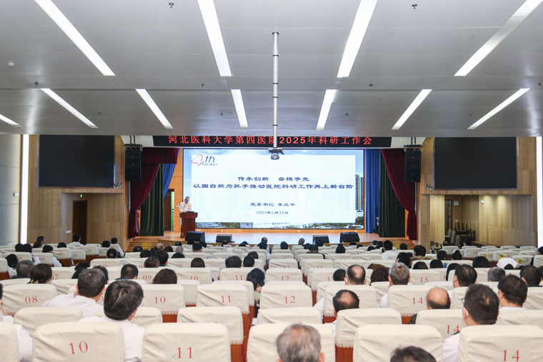 2月13日,我院在本部新医技病房楼学术报告厅召开了2025年科研工作会。河北医科大学人事处处长张景坤,科技处处长申海涛、副处长张荣,教务处处长尚丹丹到会指导工作,全体院领导、临床医技科室及相关职能部门负责人参加会议。会议旨在深入贯彻落实河北医科大学第四次党代会精神,以国家自然科学基金工作为抓手,统一思想、凝聚共识,奋力开创医院科研工作新局面。常务副院长何宏涛主持会议。