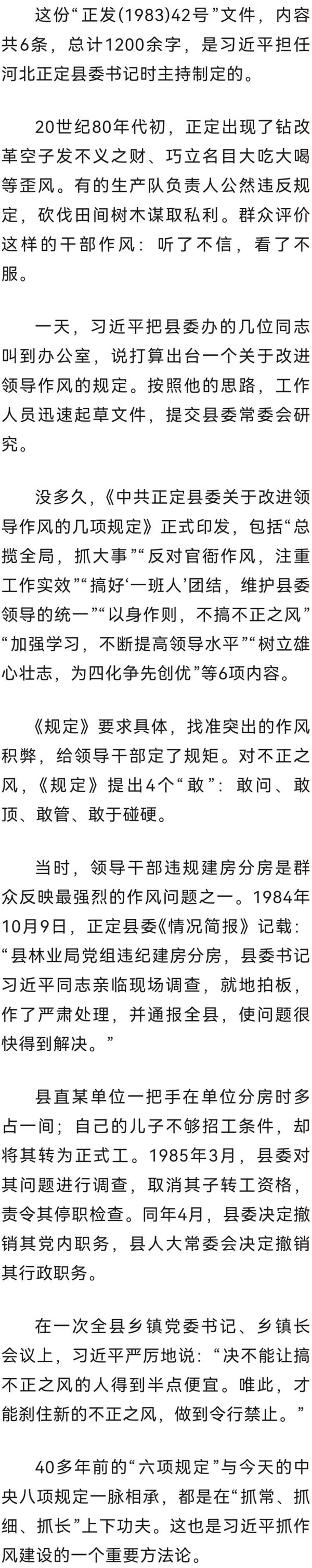 1983年12月6日,正定县委印发改进领导作风“六项规定”。(来源:《让群众过上好日子——习近平正定足迹》)