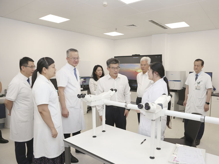 8月5日,河北医科大学党委书记于树江、校长王宝山、党委副书记武宇明带领相关部门负责同志赴我院本部院区实地考察工作,有关院领导陪同调研并深入进行座谈交流。
