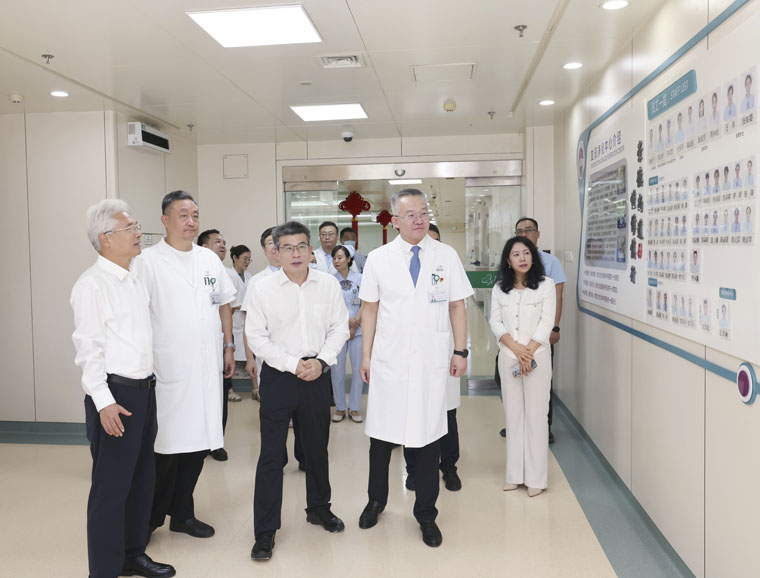 他强调,要进一步加强党建引领,特别是结合深入贯彻中央八项规定精神学习教育、医德医风专项整治行动等,把党的政治优势转化为推动医疗业务发展的强大动力,以高质量党建推动医院高质量发展。要进一步加强学校和医院的融合发展,学校的人才培养、科学研究、社会服务、文化建设、国际化推进等,都要与医院的医疗、教学、科研工作紧密融合,从而更高效地破解当前发展中存在的一些实际难题。要加强医疗服务、人才培养和科研创新等关乎长远发展的核心领域建设,特别要对标国内第一方阵医院,着力加强内涵建设,提升综合实力,为推进国内一流特色鲜明医科大学建设提供坚强支撑,为健康中国和健康河北建设贡献力量。
