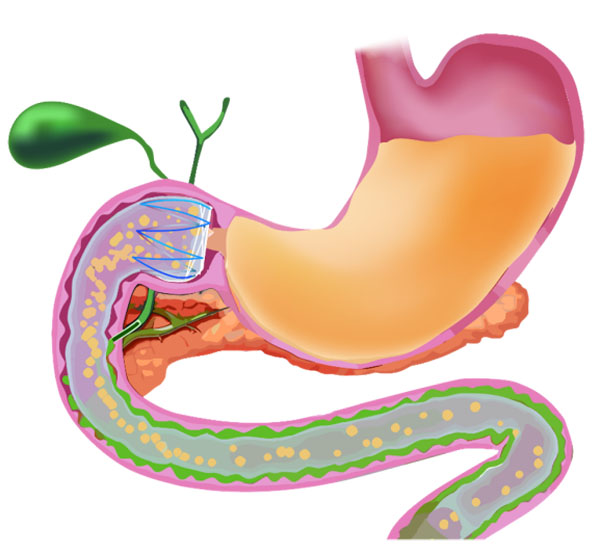 内镜下胃转流支架置入术原理是:隔离食糜与十二指肠和空肠上端的接触,影响食物的消化吸收,减少小肠绒毛上皮细胞对营养的吸收,干扰与胰岛素抵抗相关的激素信号,从而改善患者的肠道菌群,“重塑”肠道生态,多因素共同促进减重降糖。