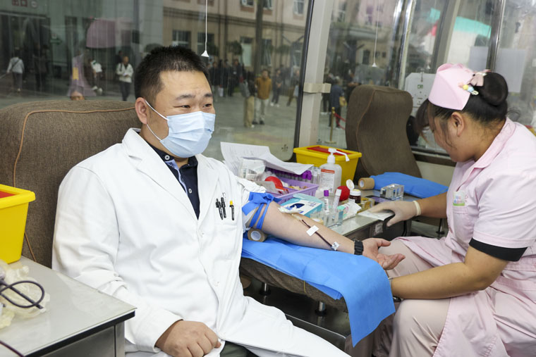 上午8时,献血登记点已经排起了等候献血的队伍。临床医生、护理骨干、行政后勤、规培学员、实习同学等在工作人员和志愿者的引导下,有序完成信息登记、健康征询、体格检查、血液初筛等环节。这其中既有多次参与献血的“老将”,也有首次献血的“新兵”。作为奋战在救死扶伤一线的医护人员,大家深知血液在临床救治中的重要性和紧迫性,纷纷表示希望用热血为患者搭起生命桥梁。