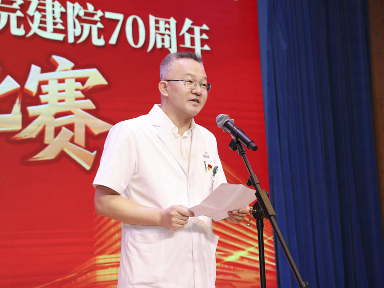 党委书记李立平在致辞中回顾了医院与国家同频共振的发展历程。他指出,从70年前数十张病床的初创规模,到如今拥有3186张编制床位的综合性三级甲等医院,一代代四院人响应党的号召,以“小我”融入“大我”。东院区医疗综合楼投用标志着“一院两区”格局持续完善,实现从“规模扩张”到“内涵提升”的重要跨越。四院人始终坚守三个初心:对祖国忠诚,在肿瘤防治领域争当行业标杆;对患者仁爱,践行“人民至上、生命至上”的庄严承诺;对医院热爱,以“主人翁”精神参与每一项改革发展。他表示,10位决赛选手正是全院职工的缩影,他们的故事将生动诠释四院人攻克技术难关、提升服务质量、扛起社会责任的精神内核。