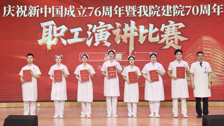 七十六载山河壮阔,七十春秋医路峥嵘。为庆祝中华人民共和国成立76周年,同时喜迎医院建院70周年,9月29日,我院在本部新医技病房楼报告厅举行了主题为“我与祖国同奋进,我和医院共成长”职工演讲比赛决赛。全体院领导及200余名干部职工齐聚现场,共同聆听10名晋级选手讲述国家发展、医院变迁与个人成长的深刻联结,感受新时代四院人爱国爱院、砥砺奋进的精神风貌,见证这场感人至深的“初心盛宴”。