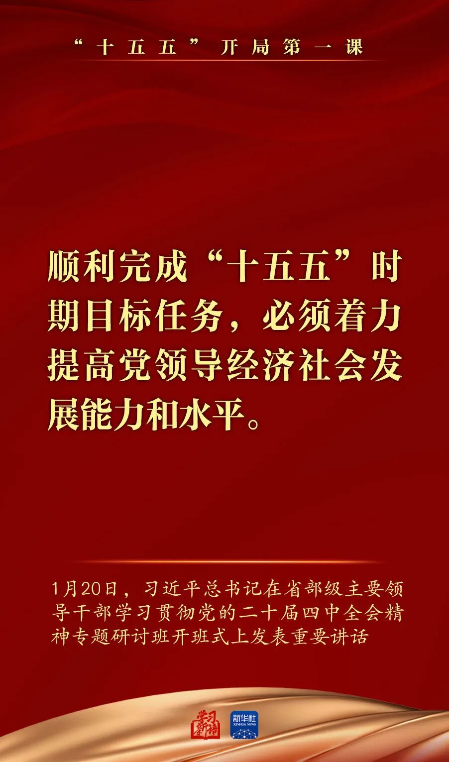 1月20日,省部级主要领导干部学习贯彻党的二十届四中全会精神专题研讨班在中央党校(国家行政学院)开班。习近平总书记在开班式上发表重要讲话强调,深入学习贯彻党的二十届四中全会精神,努力实现“十五五”良好开局。总书记讲话要点,一起学习领悟。