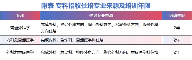 1.主要招收完成住院医师规范化培训(以下简称住培)取得合格证书并自愿参加专培的临床医师,专培招收来源见表1。