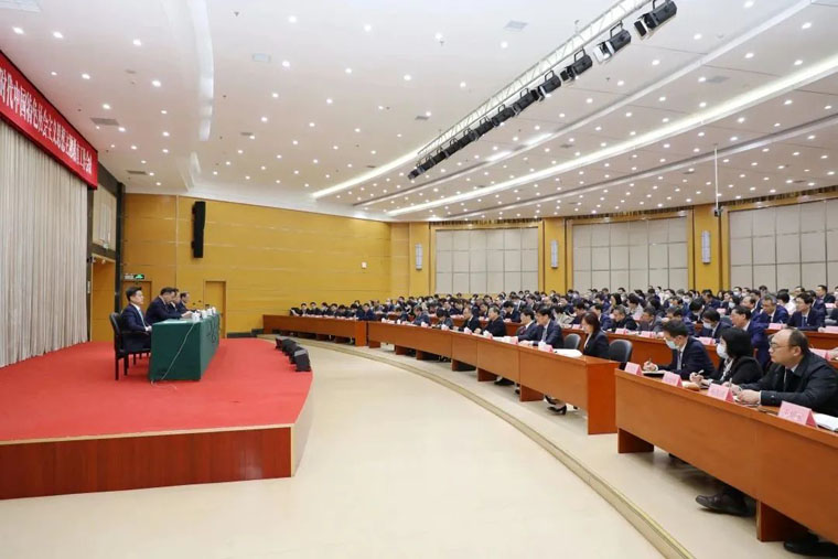 417日下午,学校召开学习贯彻习近平新时代中国特色社会主义思想主题教育工作会议,深入学习贯彻习近平总书记在中央主题教育工作会议上的重要讲话精神,全面落实河北省主题教育工作会议要求,对全校开展主题教育进行动员部署。省委主题教育第十七巡回指导组组长,省十三届政协常委、省政协财经委副主任杨景祥同志,省委主题教育第十七巡回指导组副组长、廊坊市人大常委会副主任李桂强同志到会指导,学校党委书记、主题教育领导小组组长翟海魂作动员部署讲话,党委副书记倪铁军主持会议。