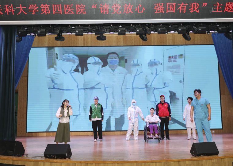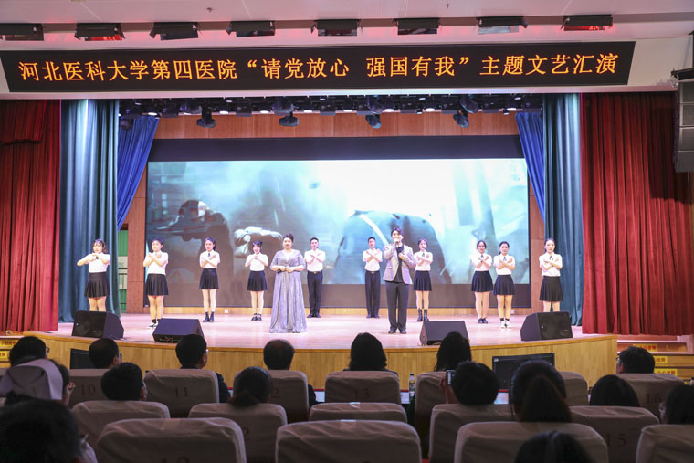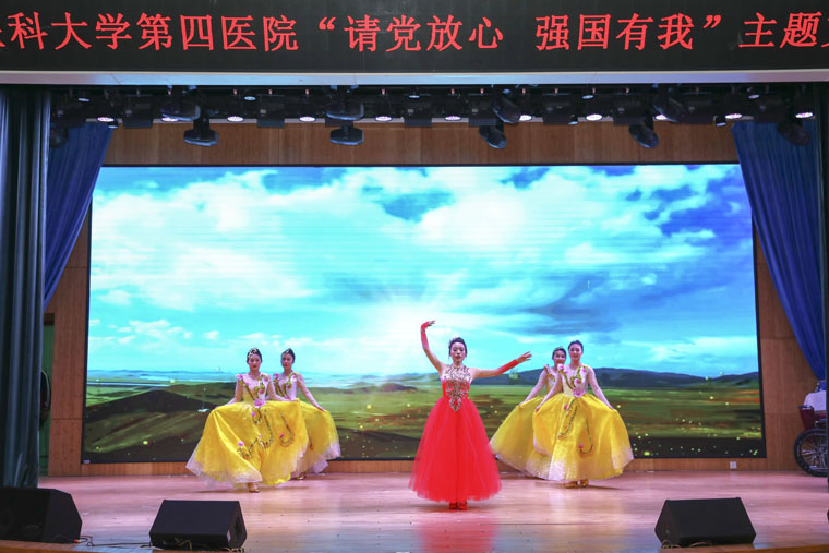 在五四青年节到来之际,我院在本部新医技病房楼报告厅举办了请党放心 强国有我主题文艺汇演。各团支部利用休息时间,加班加点排练,为大家倾情奉献了一场精彩演出。本次汇演采用无主持方式,分为四幕,以歌舞、情景剧、健美操等形式,充分展现了四院青年不负韶华、昂扬向上的精神风貌。全体院领导,各党总支、党支部、团支部负责人及200余名团员青年参加。