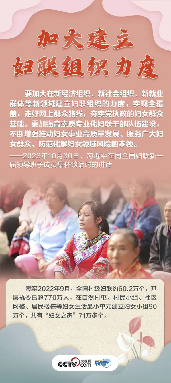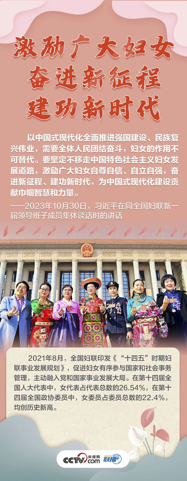 “妇联是党和政府联系妇女群众的桥梁纽带。”10月30日,习近平总书记同全国妇联新一届领导班子成员集体谈话并发表重要讲话,高度肯定巾帼力量,并为新形势下妇女事业和妇联工作发展指明方向。