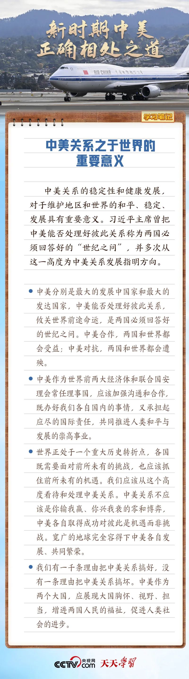 中美关系是世界上最重要的双边关系。作为两个世界大国,中美能否确立正确相处之道,攸关世界和平发展和人类前途命运。新的历史时期,如何找到中美两个大国正确的相处之道?习近平主席多次就推动中美关系朝着正确的方向前行作出重要论述。