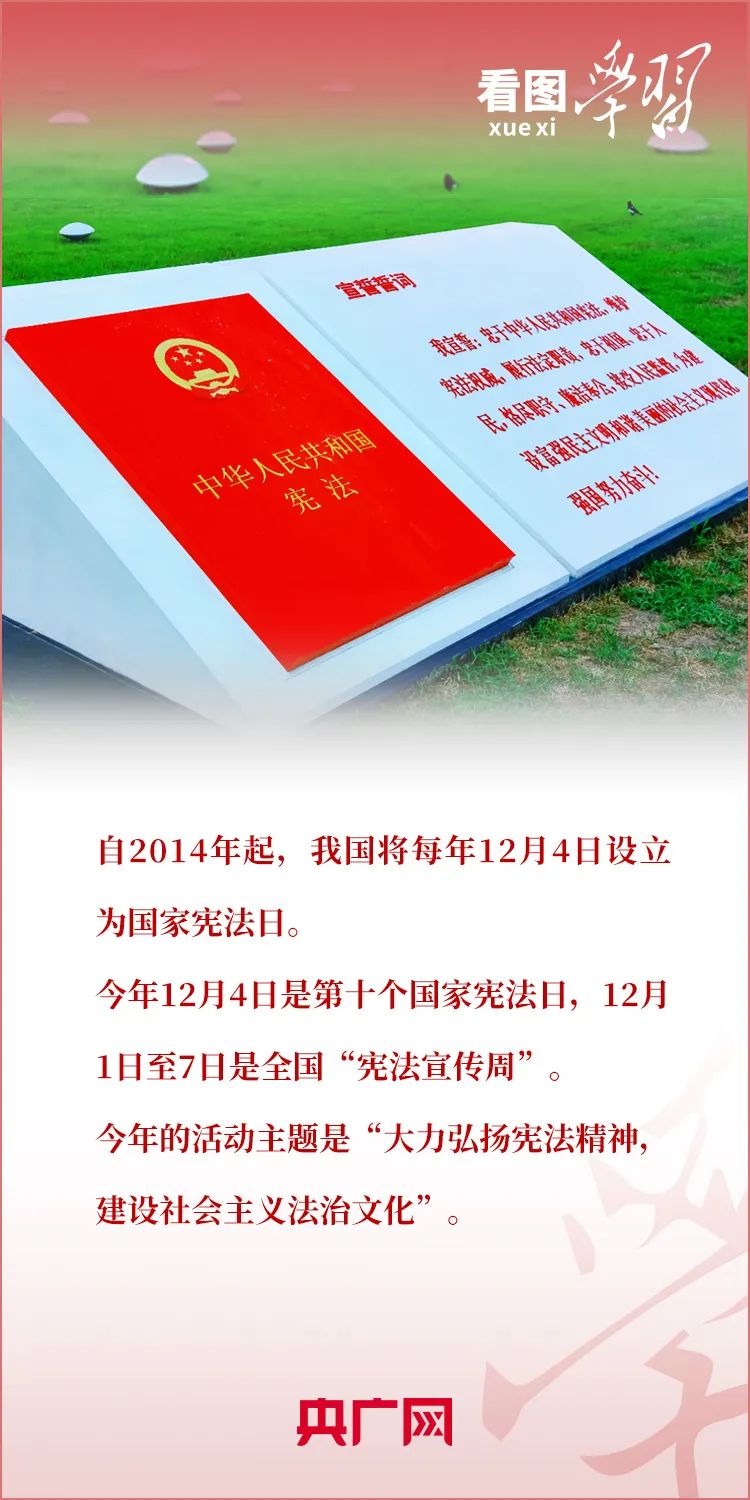 宪法是国家的根本法,是党和人民意志的集中体现。尊崇宪法、学习宪法、遵守宪法、维护宪法、运用宪法,是每个公民的义务。今天是第十个国家宪法日,央广网《看图学习》栏目为您梳理习近平总书记关于宪法的重要论述。一起来学习!