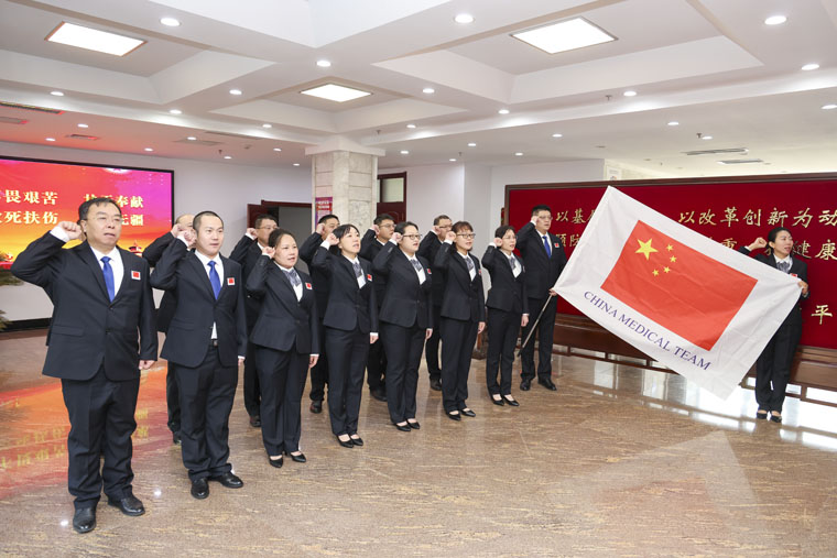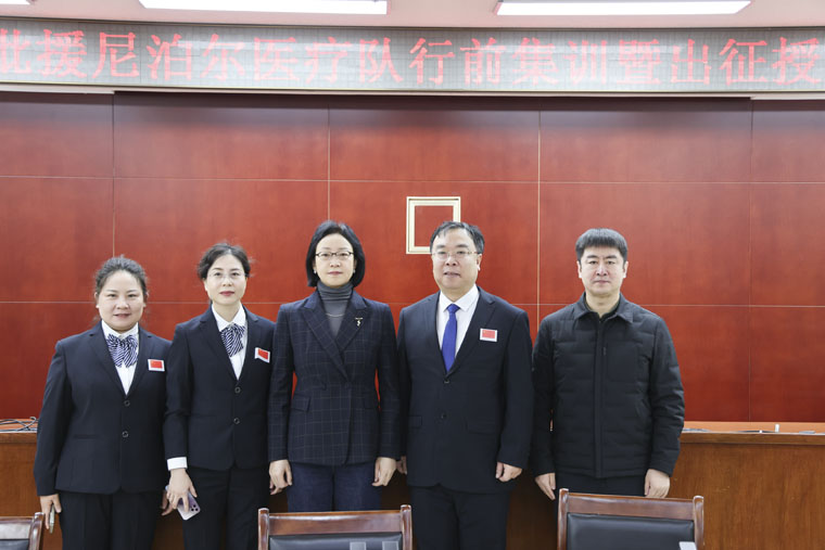 1月22日,河北省卫生健康委举行第17批援尼泊尔中国医疗队行前集训暨出征授旗仪式。省卫生健康委一级巡视员段云波为医疗队授旗,我院副院长田晓玲、人事处处长韩国军代表医院出席送行仪式。此次出征的17名医疗队员中,我院血液内科黄晨担任医疗队队长,血液内科宋博宁、胸部放疗三病区苏景伟作为队员接过援外接力棒,已于今天从成都出境,前往尼泊尔执行为期一年的援外医疗任务,续写中尼友谊新篇章。